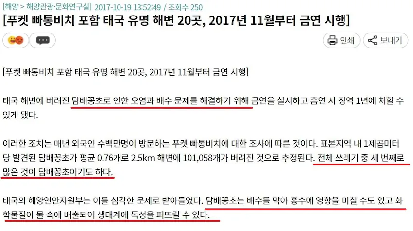 우선 우리나라 뿐 아니라 태국에서는 담배꽁초의 홍수 그리고 오염이 된다는 것을 인지 하고 있음