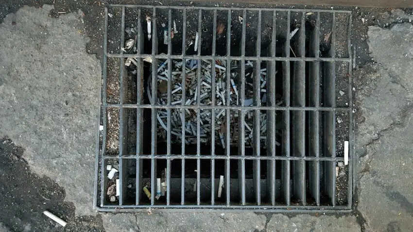 흡연충의 담배꽁초 무단투기로 막힌 배수구