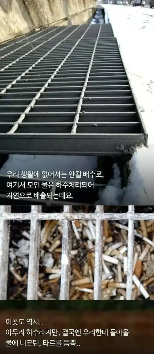 그렇다고 배수로를 열어두면? 담배꽁초를 거기다 버림