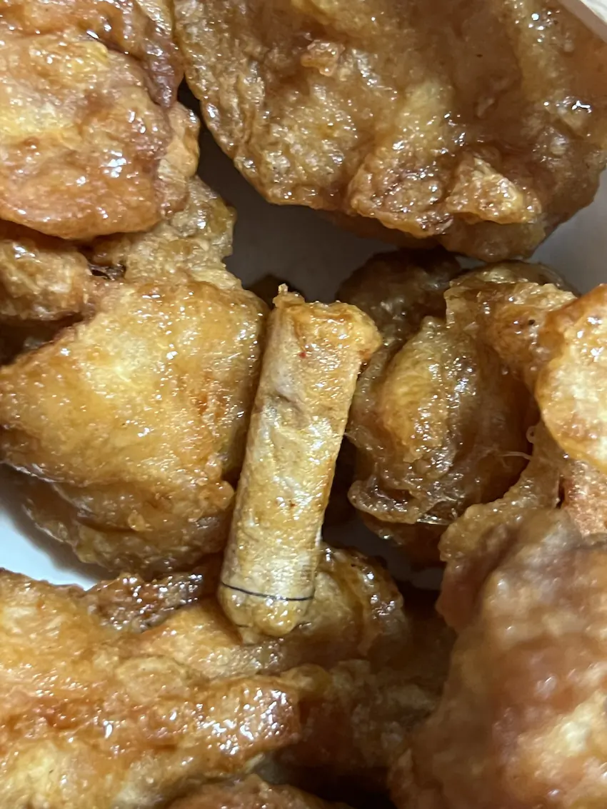 순살을 시켰는데 치킨에 뼈 같은 게 있길래 뭐지 하고 봤음