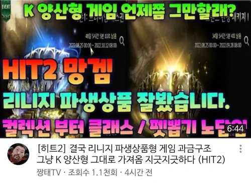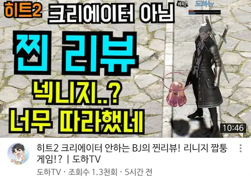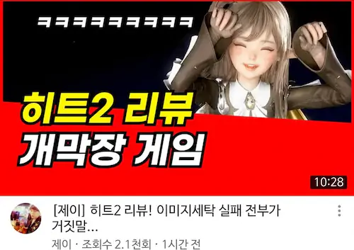유튜버들 히트 2 망했다고 함. 혹평
