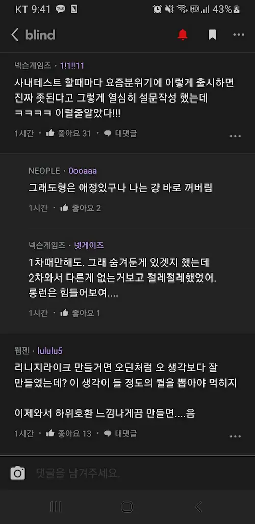 히트 2 블라인드 개발자 반응