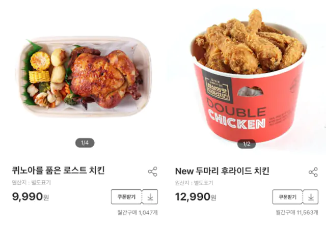 당당치킨으로 유명한 홈플러스에서 이번에 새로 나온 퀴노아를 품은 로스트 치킨과 뉴 두마리 후라이드 치킨.