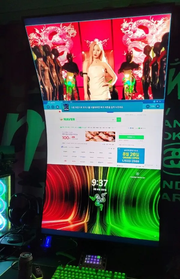 세로로만 쓸 생각하고 샀는데 3개 틀면 (틀것도 없는데) 병신 같고 2개 틀고 싶은데 아래창(컴터용) 위치가 아주 주옥같다. 강제 3개 사용해야함.