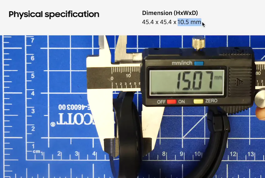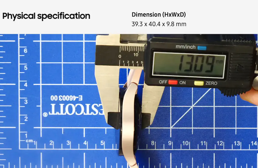 삼성이 시계 전체의 두께가 아니라, 측면 메탈과 스피커 부분까지의 두께만을 표기한 것을 발견했음.
