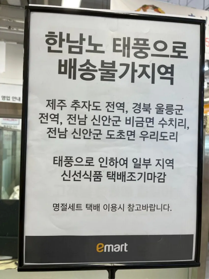 한남노 태풍으로 배송 불가지역 ㅋㅋㅋㅋ