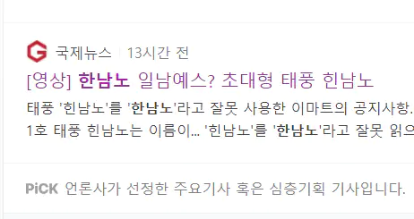 보통 언론은 단어 하나하나 맞춤법이든 뭐든 제대로 맞춰 쓰는데 목숨을 거는데 태풍 이름에 저렇게 소홀한건 솔직히 이상하긴 함.