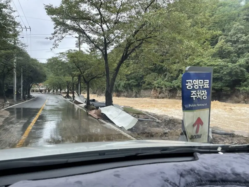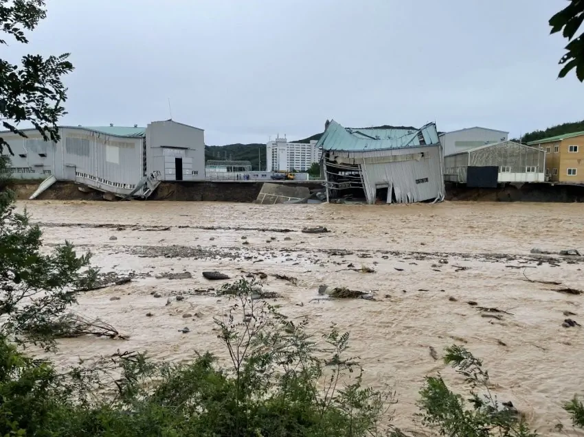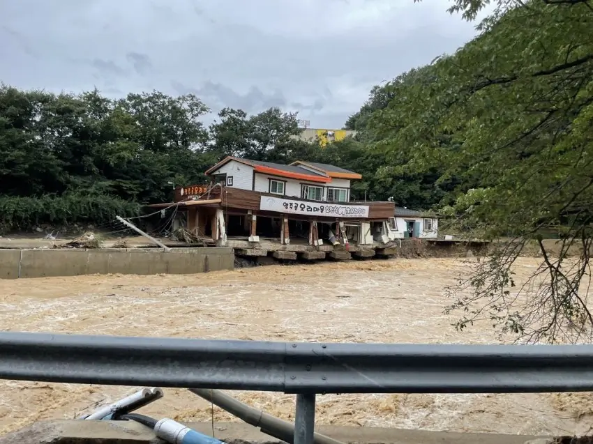 태풍 한남노 폭우에 경북 포항시 오천읍 풀빌라 건물이 떠내려가 버림.
