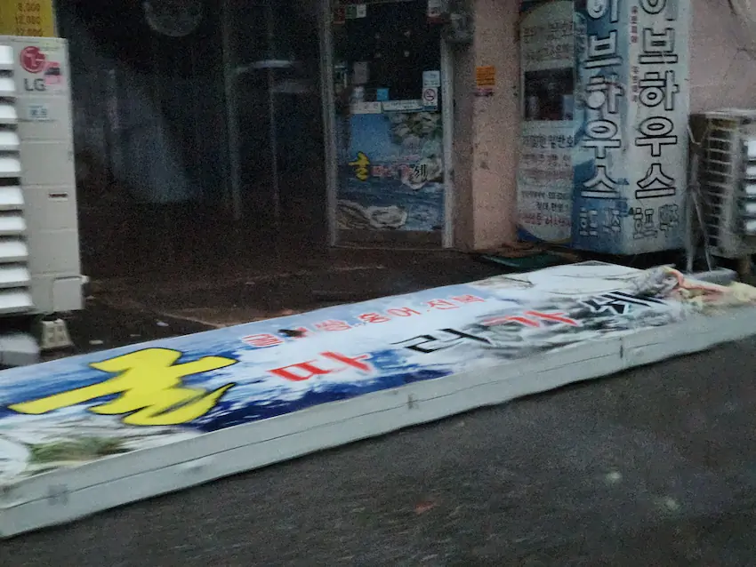 저기가 포항 시내쪽에 롯데백화점 앞인데, 사장님 내외분이서 너무 안쓰럽게 치우고 계시더라.