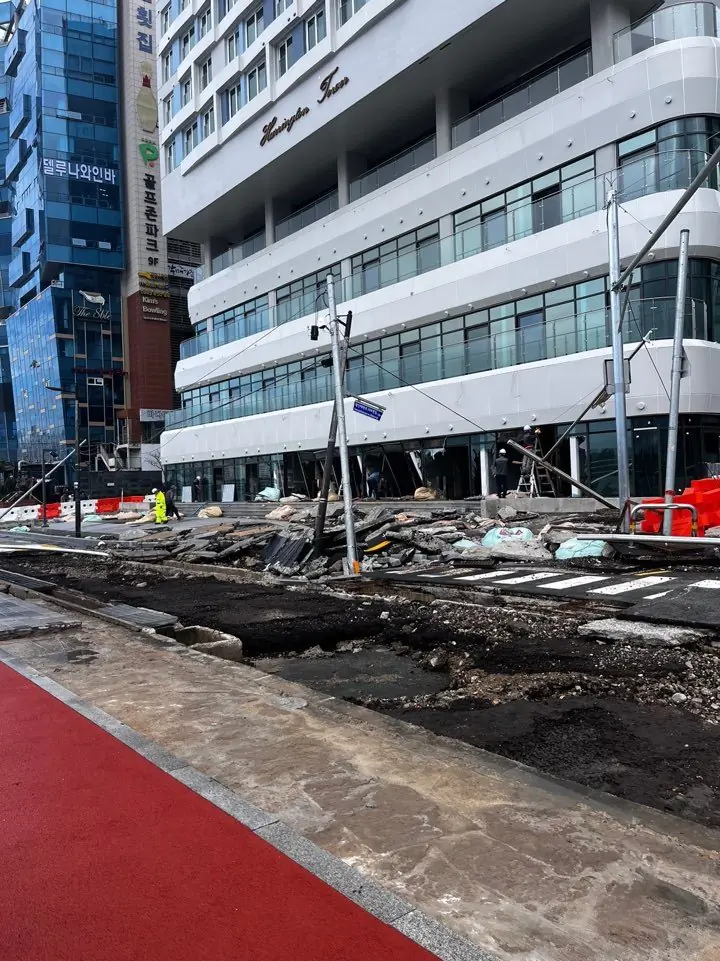 공구리 위에다 아스팔트를 깔았네... 껍데기처럼 벗겨지다니