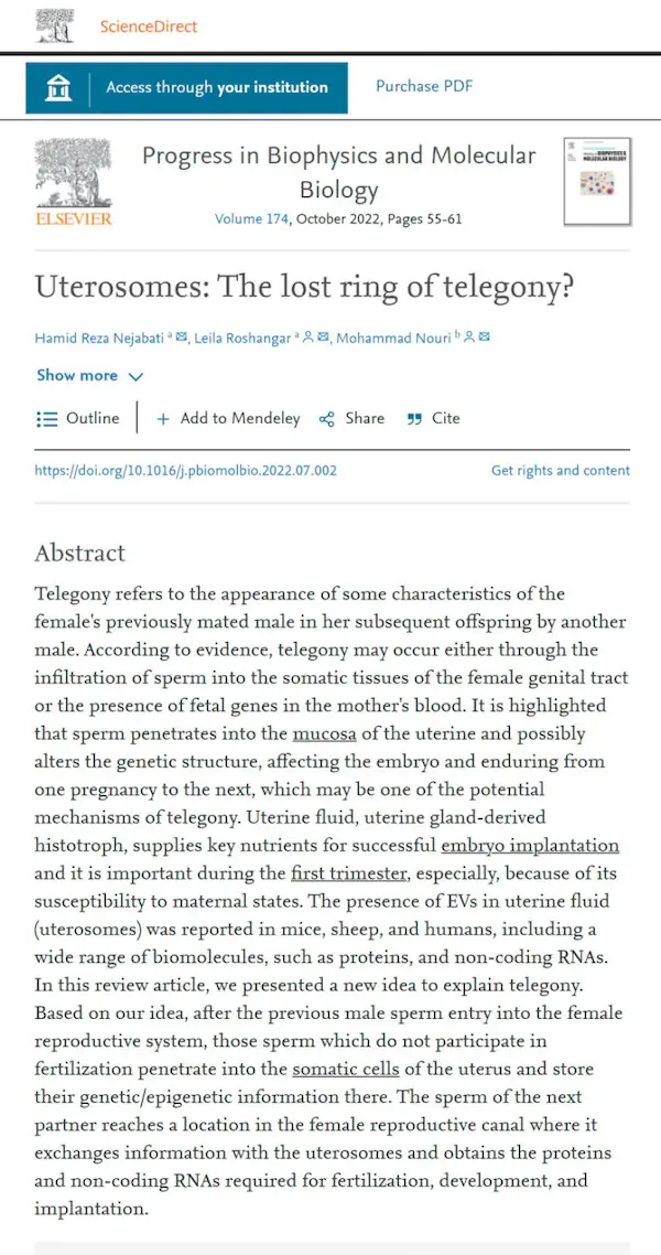리뷰 논문 (엘스비어) Uterosomes : The lost ring of telegony