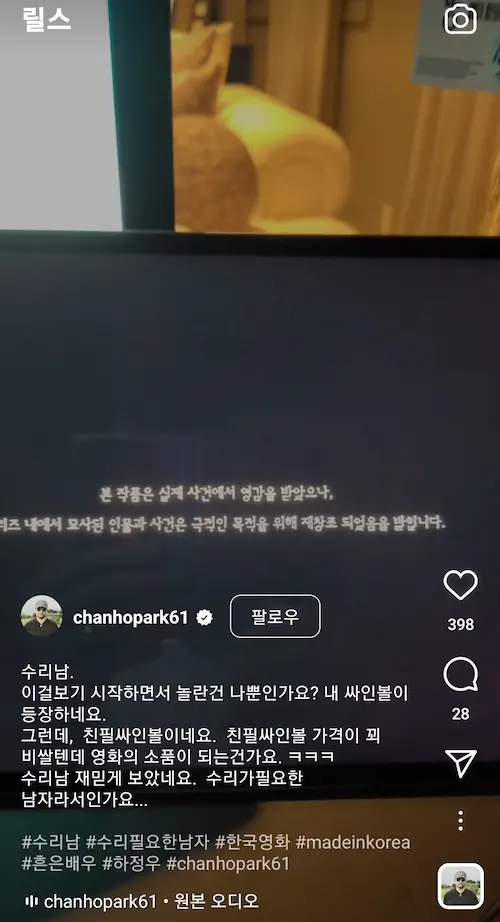 | 넷플릭스 수리남 후기 (0) | 2022.09.13 |