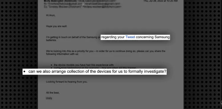 이를 트위터에 올렸고, 얼마 안 있어 삼성이 이를 보고 조사하고자 폰을 회수해감