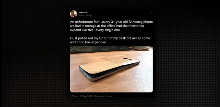 그 또한 자신의 삼성 폰이 부푼 상태였음