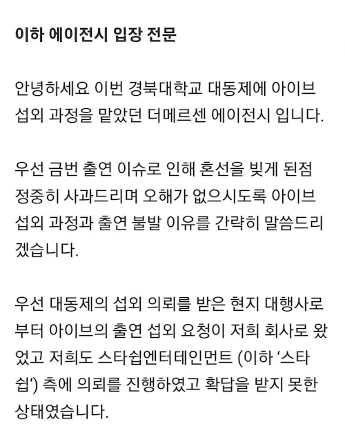 경북대 "아이브 출연료까지 입금, 스타쉽 주장 사실 아냐"