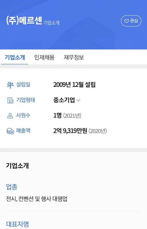 대행사 메르센은 주소 검색하면 아파트 나오는 1인 기업