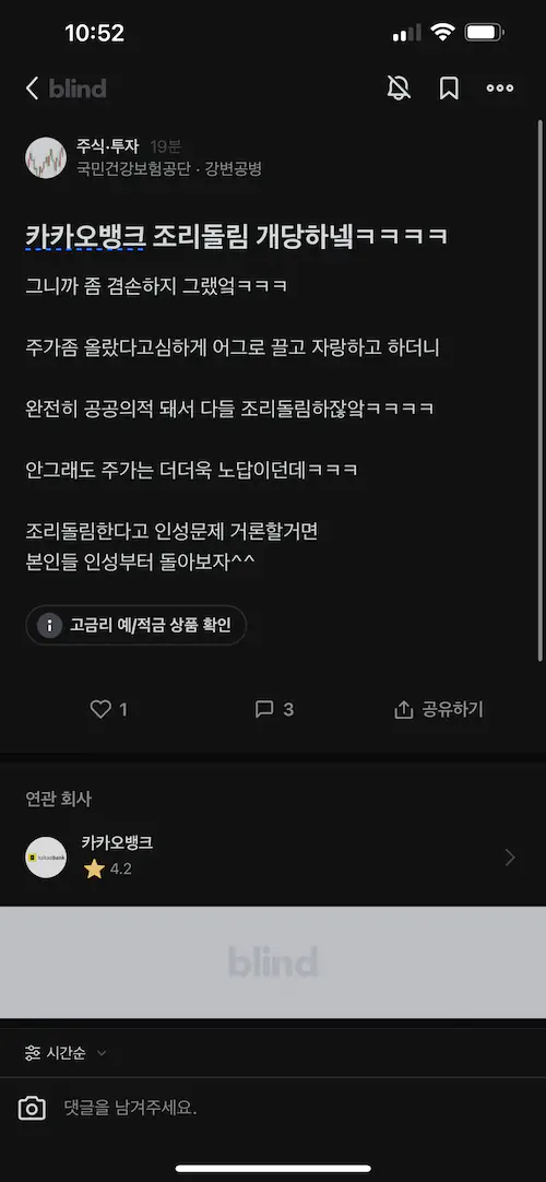 블라인드 카뱅 조리돌림 당하네 ㅋㅋ 블라인드 존나 웃기노 ㅋㅋㅋㅋ