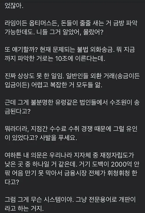 저거 PF 따올때 수수료 어떤 사기꾼이 먹었겠냐 ㅋㅋㅋ 딱 답 나오지않냐? 회계법인이 한정때린 거에 돈 때려박은 금융사도 부실책임져야지