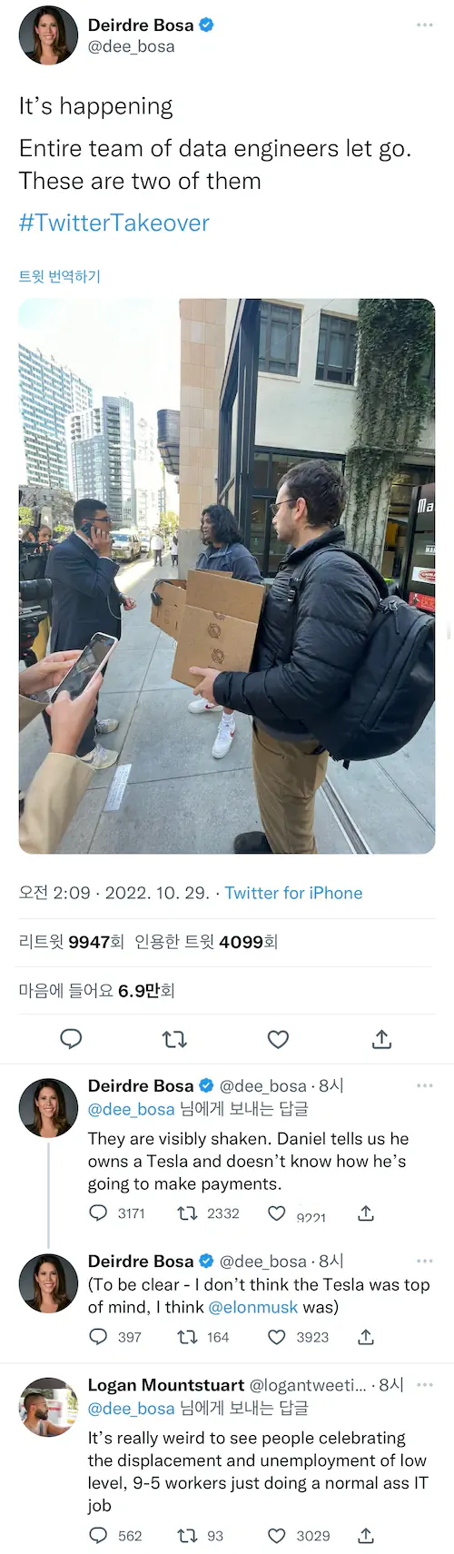 트위터 독재 검열주의자들 선동당한건지 알고 그러는건지 머스크가 죄없는 직원 짤랐다고 단체로 거짓 선동중.