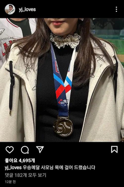 우승메달 사모님한테 걸어드렸다고 함.