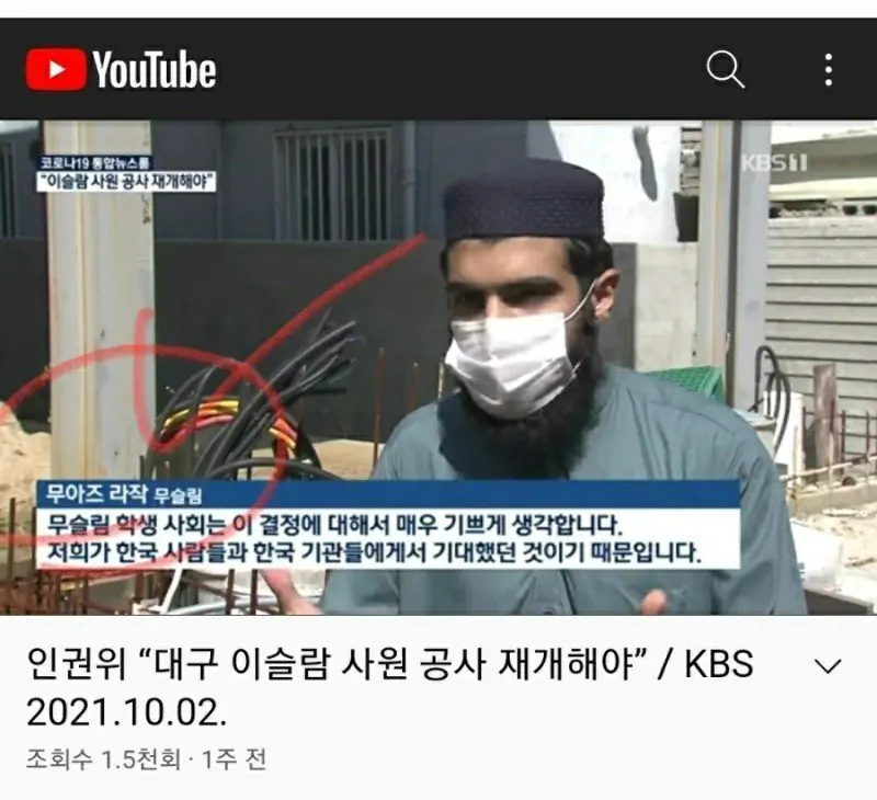 대구 주민분들이 건설 못하게 돌아가면서 막으니까 무슬림들이 무단 주거 침입에 협박까지함.