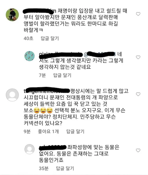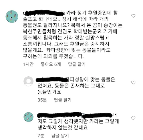 동물단체 카라 댓글