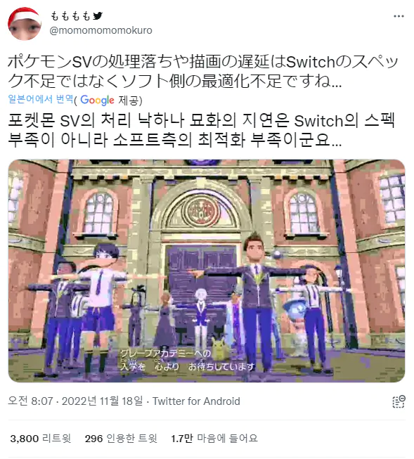 "현재까지는 제가 스위치에서 플레이한 AAA 게임 중 최악입니다. 그리고 당연히 이건 데이원 패치를 적용한 것입니다."