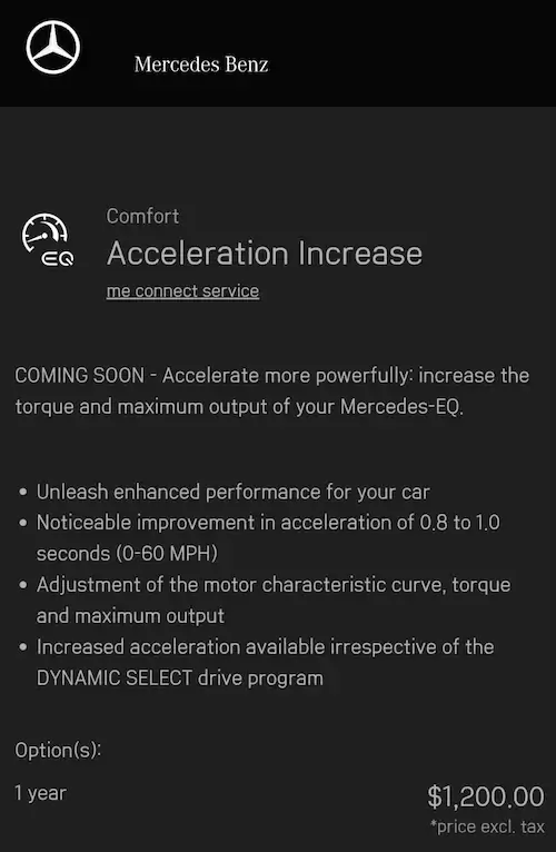 테슬라 모델 3가 먼저 acceleration boost 옵션을 팔기 시작하더니;; 벤츠까지....