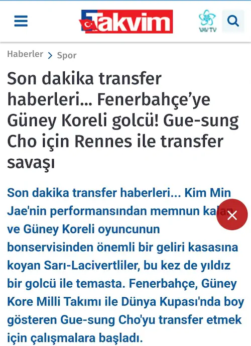 조규성 페네르바체에서 영입준비 중.