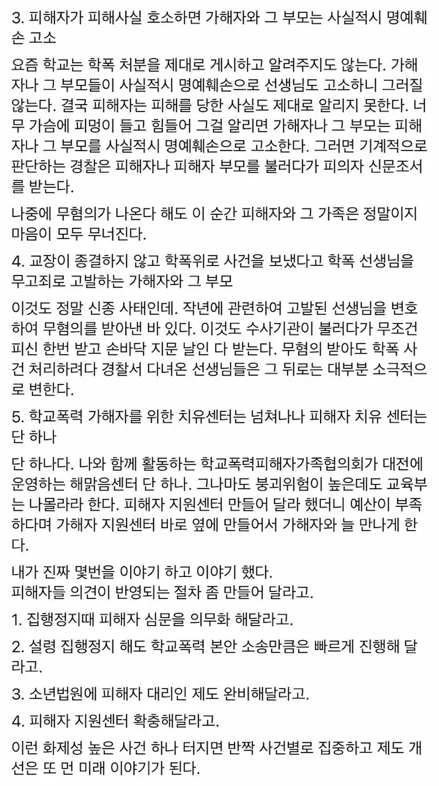 요약: 법과 제도가 똑바로 돌아가질 않아서 사적제재 쪽을 관심이 더 쏠리기 전에 빨리 학폭 관련해서 법이던 제도던 개선해야 한다.