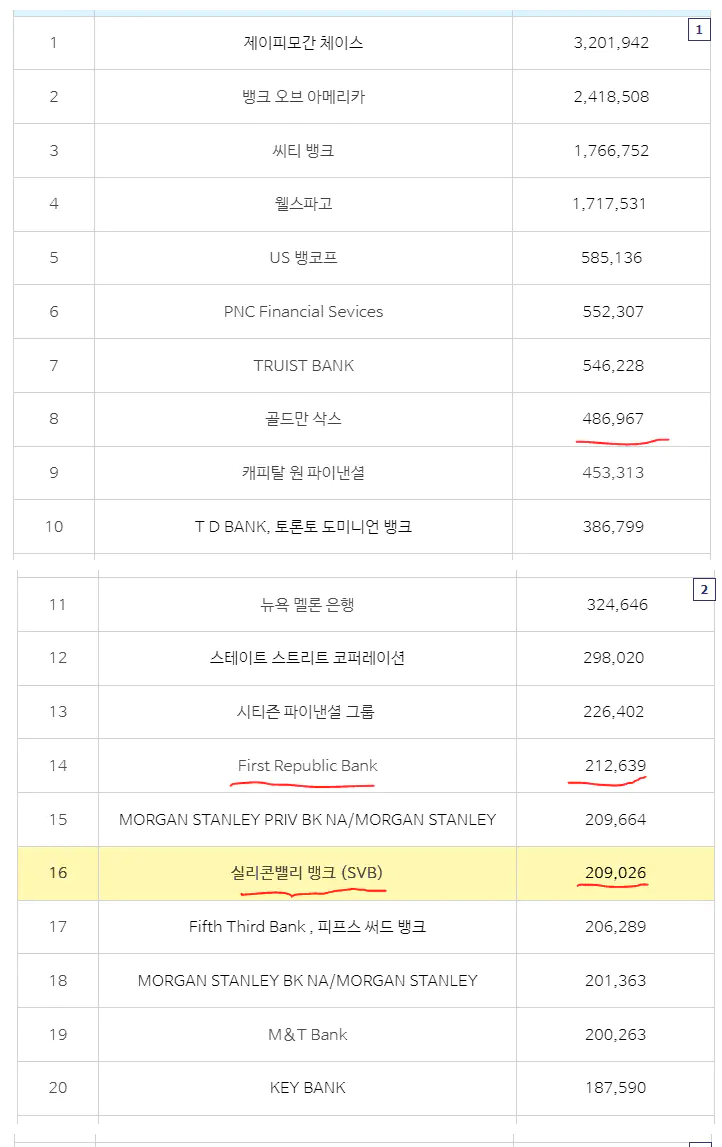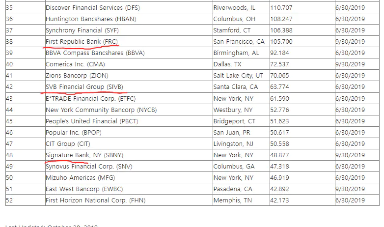 퍼스트 리파블릭 뱅크 38위 svb 42위 시그니처뱅크 48위