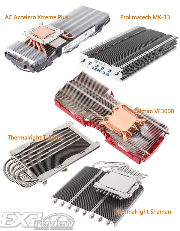 테스트에는 아틱 쿨링 엑셀레로 익스트림 플러스, MK-13, T-Rad2 GTX, 샤먼이 포함되었고, 지포스 GTX 275의 레퍼런스 쿨러와 MSI N460GTX HAWK의 트윈 프로저 쿨러를 사용하여 비교하였습니다.