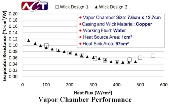 그림 3. 혁신적인 심지 디자인은 증기 챔버의 전체 저항을 0.12 ° C-cm2 / W 미만으로 줄입니다.