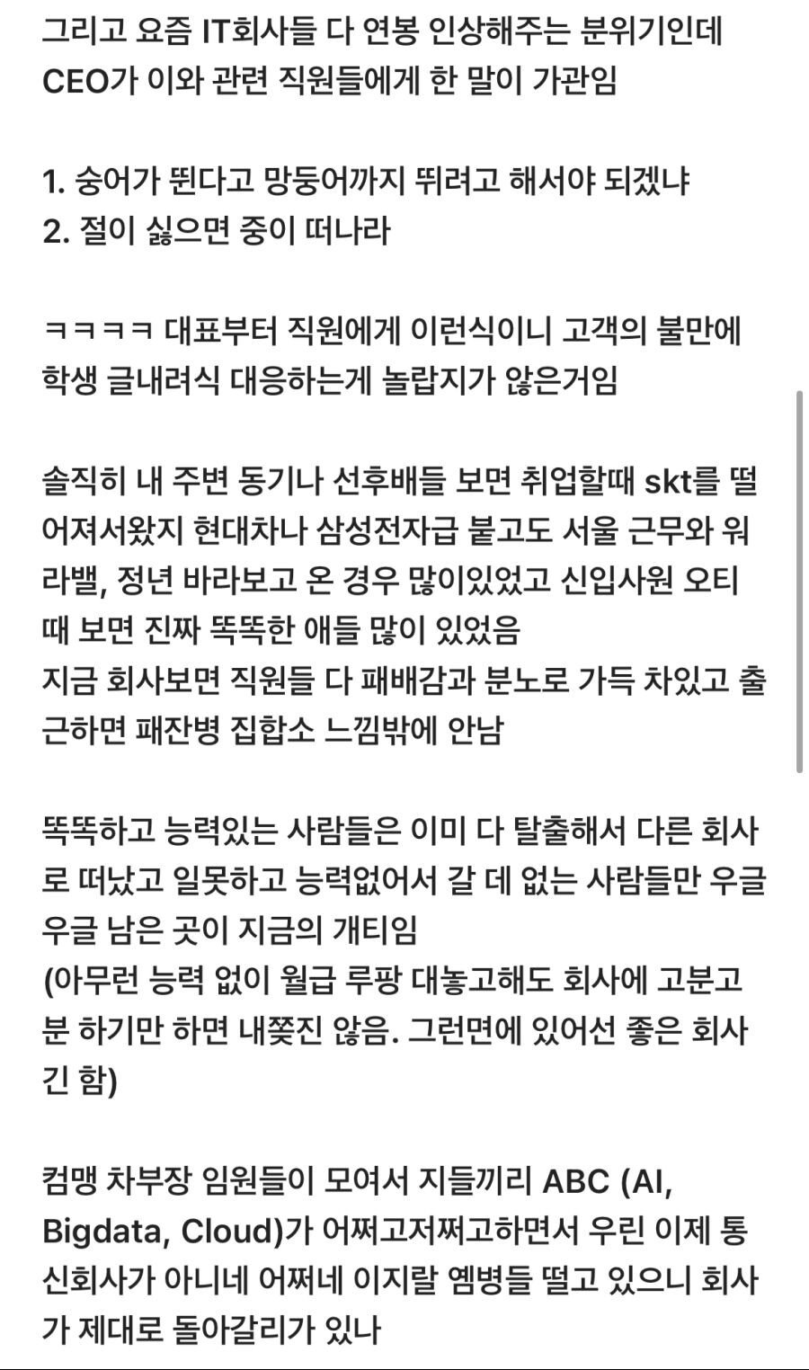 2) 영상을 왜 내려야 하는지 이유를 묻자, KT 내부에서 영상 때문에 난리가 났다는 이유였습니다.