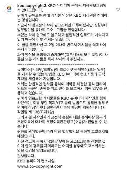 이과정에서 크보는 구단들에게 계속 움짤 유튜브 허용하는