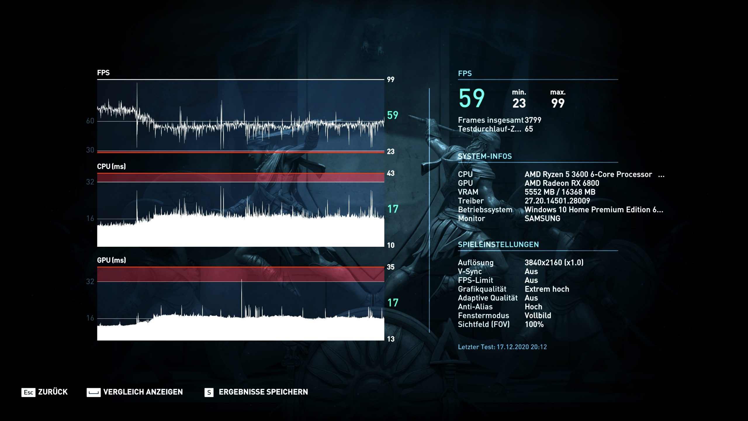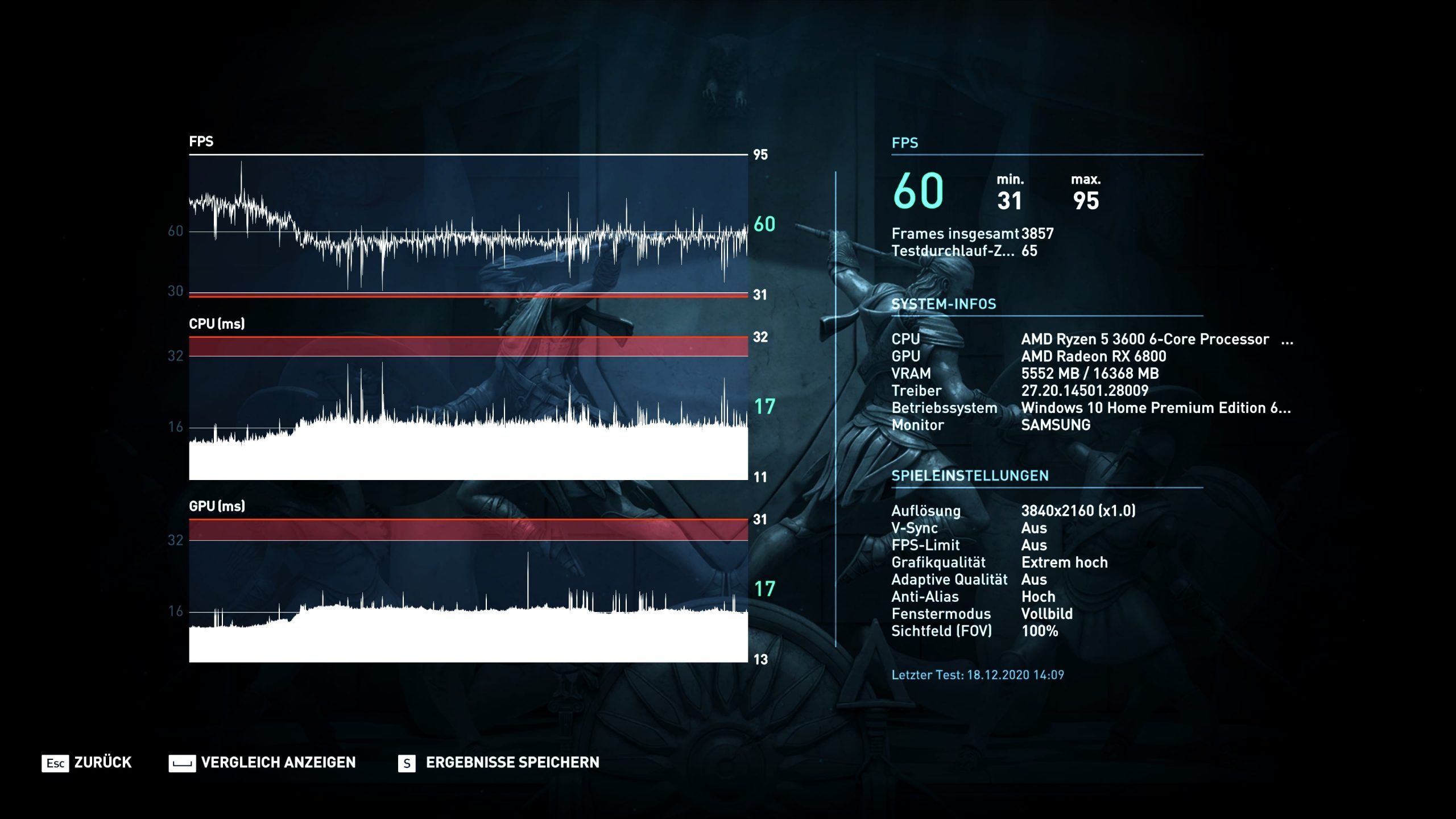 이 카드는 실제로 UHD에서 60 FPS로 거의 모든 타이틀을 쉽게 처리합니다. 어쨌든 내 패널은 더 많이 표시할 수 없으며 Freesync는 삼성 TV에 탑재되어 있기 때문에 QHD에서 120Hz로 또는 UHD에서 45 ~ 60Hz로 동기화하도록 선택할 수 있습니다. Watch Dogs Legion과 같은 새로운 블록버스터도 문제없이 실행되지만 약간의 조정이 필요합니다. 그러나 이 설정의 강도는 주로 FHD 및 QHD에서 볼 수 있습니다. 165 와트의 ASIC 전력만으로도 부분적으로 매우 높은 클럭 속도를 달성하기 때문입니다. 이것은 결국 그레타의 18 번째 생일에 맞는 거의 선물입니다.