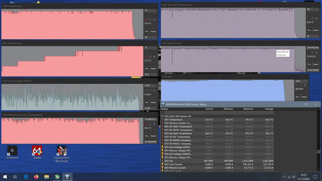 물론 이러한 상황에서 오버 클럭킹은 의문의 여지가 없습니다. 이 카드는 케이스에서 기본 설정으로도 문제없이 실행되므로 반드시 필요한 것은 아닙니다. 그럼에도 불구하고 폐열을 비웃어서는 안 되며 장시간 게임 세션으로 인해 케이스가 상당히 가열됩니다. 또한, 프로세서 (이미 카드로 인해 과도하게 사용됨)는 이미 큰 AMD 레퍼런스 쿨러로 인해 매우 열악하게 냉각되어 눈에 띄게 더 큽니다. 거기다가, 마더 보드는 또한 전압 변환기에 냉각 기능이 없기 때문에 (예 : 베어 전압 변환기) 현재로서는 냉각 한계의 경계선에 걸립니다.