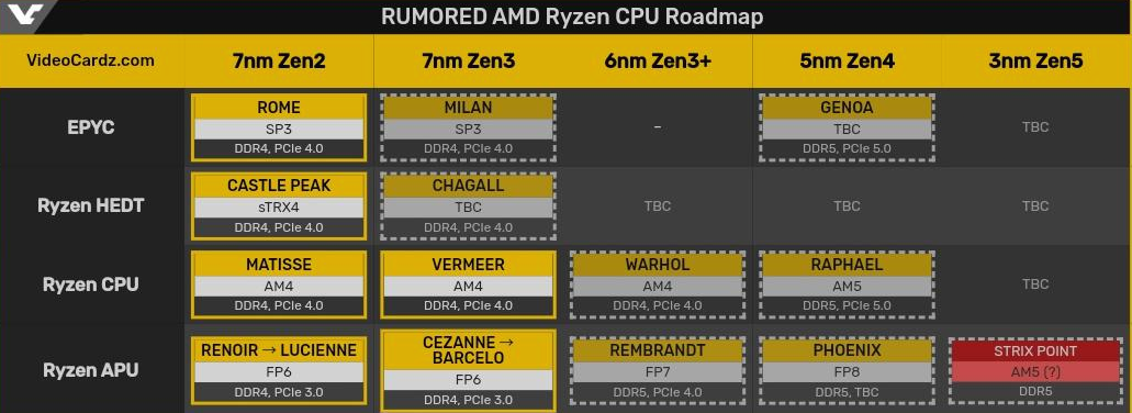 이 사이트에 따르면, AMD는 현재 2022년 출시될 코드명 Phoenix Zen4 아키텍처를 개발 중입니다. Pheonix (다가오는 Zen4 APU)에 대한 정보는 이 시점에서 많이 알려져 있다고 합니다. TSMC 5nm 공정 및 DDR5 지원을 특징으로 하는 것으로 알려져 있습니다. 이 시리즈는 또한 RDNA 통합 그래픽을 특징으로 한다는 소문이 있습니다.