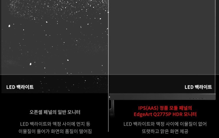 단점: 빛샘(IPS Glow / Backlight Bleed), 낮은 응답속도, 높은 전력 소모량