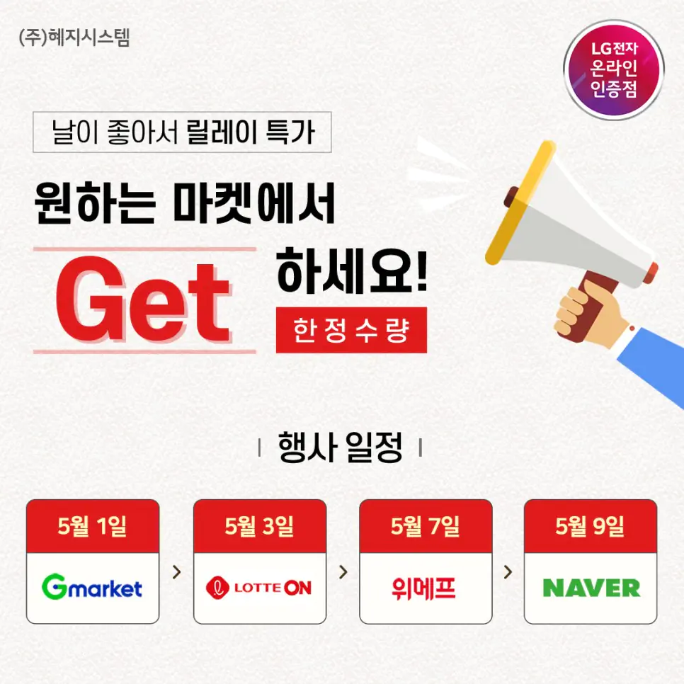 준비된 한정수량으로 각 마켓별 릴레이 10만원 할인!?