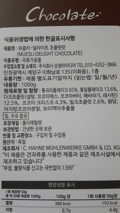 독일제라는데 흠 뮤즐리라고 거창하게 이야기 하지만 귀리로 된 씨리얼이라고 생각하면 된다
