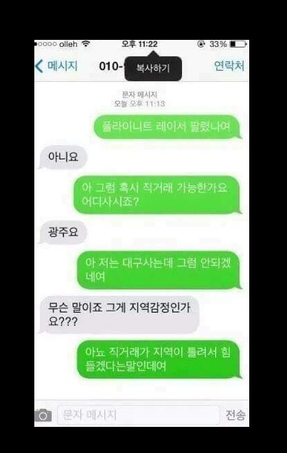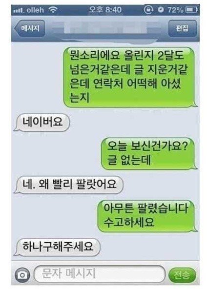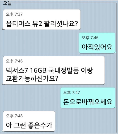 지가먼저 말도안되는 가격 부르고 판매자가 뭐라하니 미안합니다라고 못할망정 너 얼굴도 부셔도 되죠?는 뭔개념인지 참... 요즘도 다짜고짜 시비털거나 지가 잘못하고도 적반하장 피우는 놈들이 너무 많다 집에서 어릴적에 잘못하면 사과하는걸 안 가르쳐 줬나