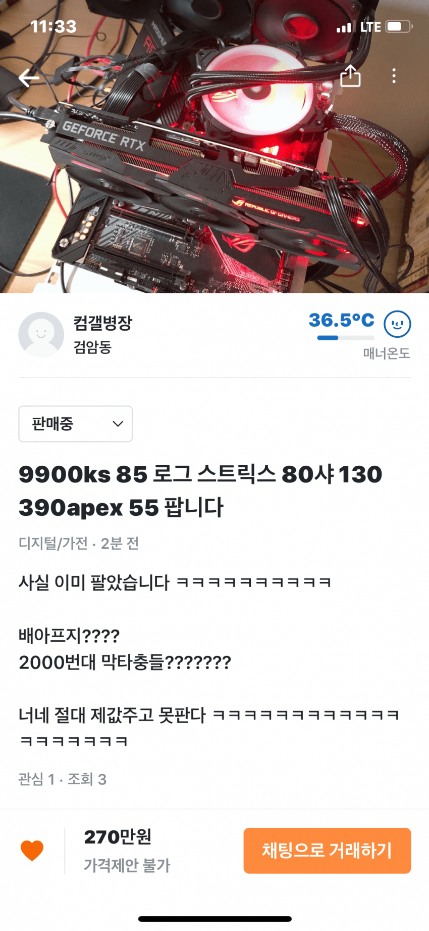 요번에 화제였던 당근마켓 판매글...