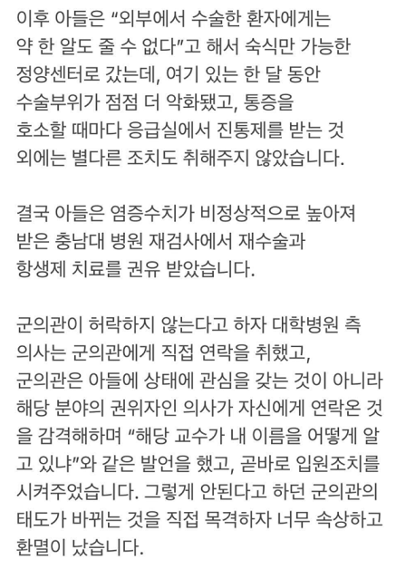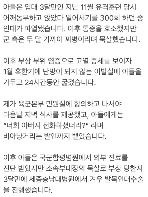 “입대 석달 만에 못 걷게 된 아들, 꾀병이라며 감금”