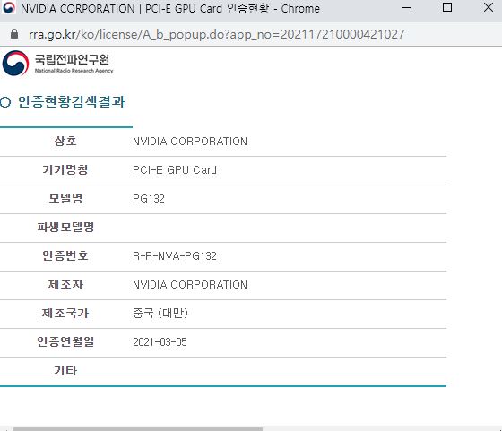 또한 2달 전인 3월경에 3080Ti 레퍼런스로 추정되는 그래픽카드가 전파인증이 통과된 것이 확인됐습니다.