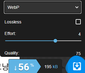 단순히 webp로 변환만 하면 품질이 제일 좋은데 용량이 되려 늘어날수도 있다
