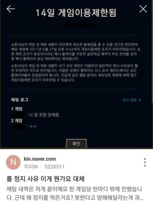 롤 억울한 정지사유 모음 2
