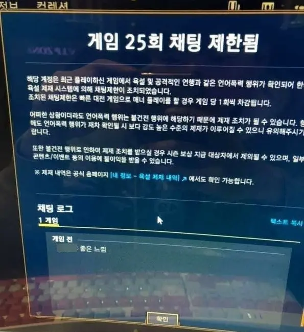옛날엔 욕한마디 안해도 다수의 팀원들한테 신고당하면 짤처럼 억울하게 제재 당하는 경우가 간혹 있었음.