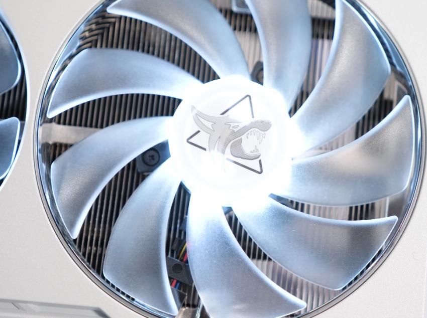 Spectral White는 기존 모델과 동일한 트리플 팬 냉각 솔루션을 갖추고 있습니다. 듀얼 100mm 팬과 중간에 단일 90mm 팬이 장착되어 있습니다. 이 카드는 8+2 페이즈 전원부 설계를 특징으로 하며 듀얼 8핀 전원 커넥터로 전원이 공급됩니다.