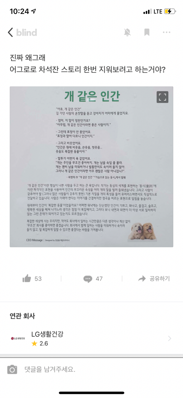 그냥 닥치고 개처럼 회사에 충성하라고 ㅋㅋ 무려 CEO 메세지